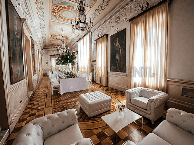 Vigna dei Cardinali è caratterizzata dalla presenza di bellissimi e raffinati spazi sia interni sia esterni. In riferimento a quelli che sono gli spazi che compongono la zona ideata per le feste è possibile dire che questi sono ben cinque. La sala principale, considerata anche la più spaziosa, è la Sala Valadier seguita poi dalla Sala dei Marmi, il Gazebo, la Sala Bambù ed infine il Terrazzo. Proprio questo è soprannominato il ‘Giardino d’inverno’ è consente di vivere il proprio evento in uno spazio magico con vista sul Ponte degli Innamorati. Molto particolare e raffinato è anche l’arredamento che fa incontrare due stili diversi tra di loro ovvero quello antico classico e quello moderno.